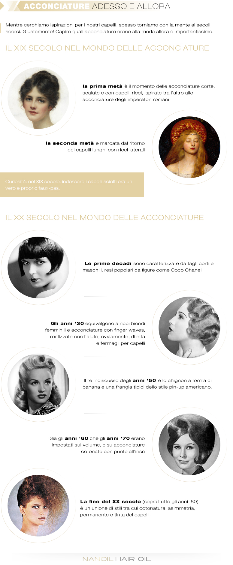 Gli ultimi duecento anni sono stati strabilianti per quanto riguarda il mondo delle acconciature. Sebbene durante questo periodo siano emerse diverse nuove mode, molti parrucchieri continuavano ad ispirarsi alle acconciature delle epoche passate. Sai quale acconciatura era famosa nel diciannovesimo secolo? O quali tagli erano alla moda qualche decina di anni fa?
